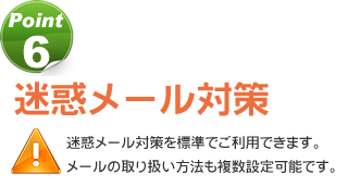 毎日届く迷惑メール、メールソフト側での振り分けも限界があります。オリネットのレンタルサーバーでは、迷惑メール対策も万全
